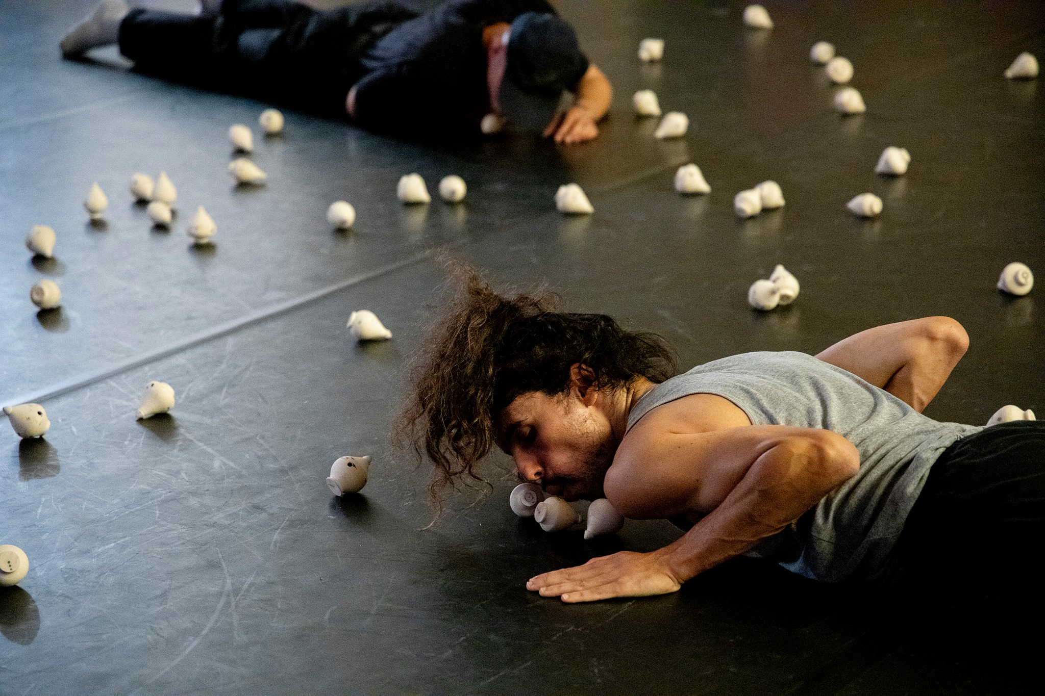 Variations for Spinning Tops are a set of exercises that emerge from traditional top games and the encounter of that spinning body with different materials. In Variation n.º 1 sound potencialities of ceramic tops that whistle particular tones due to its form and rotation are explored through gesture and action.